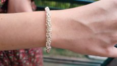 Full-fledged silver bracelet on hand.
