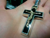 Full-fledged silver chain around the neck.