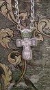 Зображено на фото: Розп'яття Христове. Свята Трійця. Святий Миколай Чудотворець. Мученик Трифон. Три святителя. Ікона Божої Матері "Толгская". Ангел охоронець. Преподобний Сергій Радонезький. Святий Спиридон Тріміфунскій.					1. Розмір: 7 х 4 мм