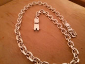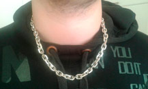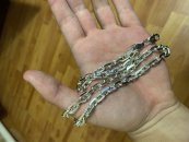 Повновісний ланцюжок. На фото зображено якірний срібний ланцюг масою понад 100 грам і довжиною близько 60 см. Як показує практика, ланцюжок з такими розмірами приверне швидше чоловічу увагу, тому цей ланцюжок можна назвати «чоловічим». Але не поспішайте закривати сторінку, якщо Вас не влаштовують її розміри, адже Ви завжди легко зможете налаштувати її параметри (натиснувши на посилання "Вибрати інші розміри") так, як вважаєте найбільш підходящими, чому також може змінитися і її вартість.